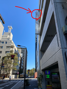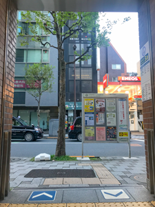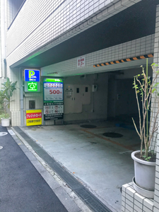 ビルの入口はコインパーキングの先