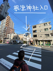 「根津神社交差点」を「右」へ